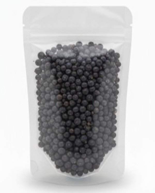 Adentrate en el sabor silvestre y la frescura boscosa con nuestras Bayas de Enebro, presentadas en un práctico Doypack que conserva la esencia de esta especia única. Estas pequeñas bayas, de color azul oscuro casi negro, son el fruto del arbusto Juniperus communis y son veneradas por su perfil de sabor resina de pino, amaderado y ligeramente cítrico.